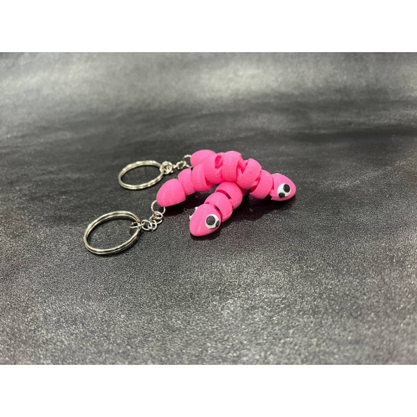 Цей брелок має сегментовану конструкцію, завдяки якій його можна згинати і рухати. Його великі очі та округла форма додають особливого шарму, а яскравий колір робить його помітним аксесуаром. Ідеальний вибір для дітей та дорослих, які люблять оригінальні дрібнички.