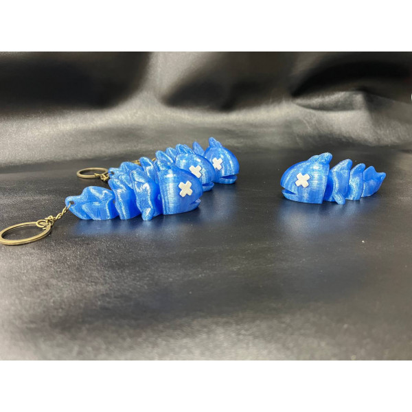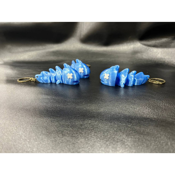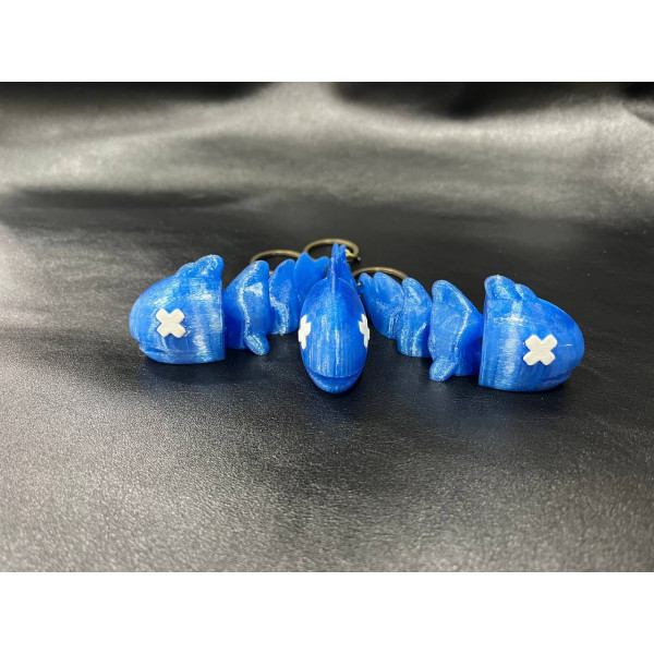 Цей брелок виконаний у вигляді синьої рибки з білими хрестиками замість очей. Його кумедний, але водночас символічний дизайн не залишить нікого байдужим. Брелок надрукований на 3D-принтері з високою деталізацією, що робить його якісним та міцним.