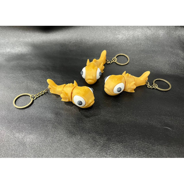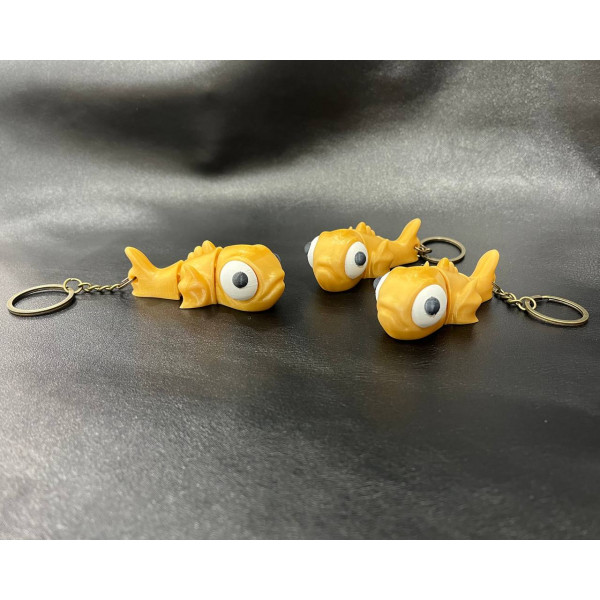 Ця кумедна рибка має великі опуклі очі та деталізований дизайн, що робить її дуже виразною. Брелок виготовлений за допомогою 3D-друку з PLA-пластику, що забезпечує його легкість та міцність. Завдяки компактному розміру він чудово підходить для носіння на ключах, рюкзаку або сумці.